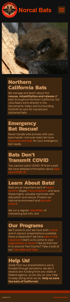 This redesign project was based on an actual website to be reimagined. It started with a design brief, user personas, a new information architecture, and a content inventory of the existing site. After that we created sketches and then wireframes on paper, then progressed through simple digital mockups to a final design for both mobile and desktop, reorganizing and modernizing the content to fit best practices. The final product consists of eight pages for both desktop and mobile, some of which are shown here, and videos demonstrating navigation through each version of the site.